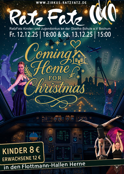 Weihnachten heißt heimkehren – und genau das feiern wir in den Flottmann-Hallen Herne, die sich für einen Abend in den quirligsten Flughafen der Stadt verwandeln. Bennet und Maja lotsen mit Witz und Herz durch eine schöne, warme Geschichte vom Ankommen: Keulenjonglage zeichnet Vorfreude in die Luft, Diabolojonglage setzt funkelnde Akzente, Akrobatik zeigt Zusammenhalt, Einräder umkurven den Vorweihnachtsstress, Tanz bringt alles in Bewegung, und Clownerie macht aus kleinen Pannen großes Lächeln.